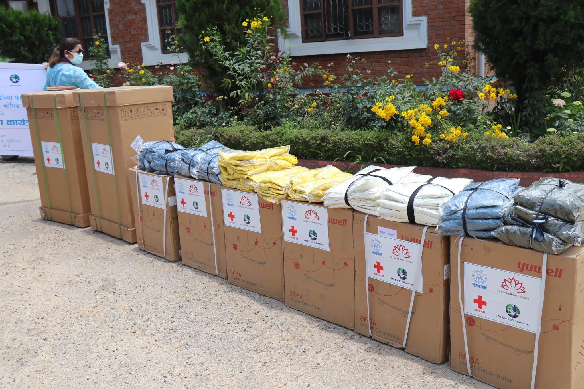 प्रारम्भ सामाजिक संस्थाकी अध्यक्ष एवं सिंगापुर रेडक्रसका नेपाल प्रतिनिधि कल्पना क्षेत्रीका अनुसार धुलिखेल अस्पताल र शिर मेमोरियल अस्पताललाई एक/एक वटा भेन्टिलेटर, २/२ वटा अक्सिजन कन्सन्ट्रेटर, २०/२० थान पिपिइ तथा मेथिनकोट अस्पताललाई २ वटा अक्सिजन कन्सन्ट्रेटर, २० थान पिपिइ हस्तान्तरण गरिएको हो ।
