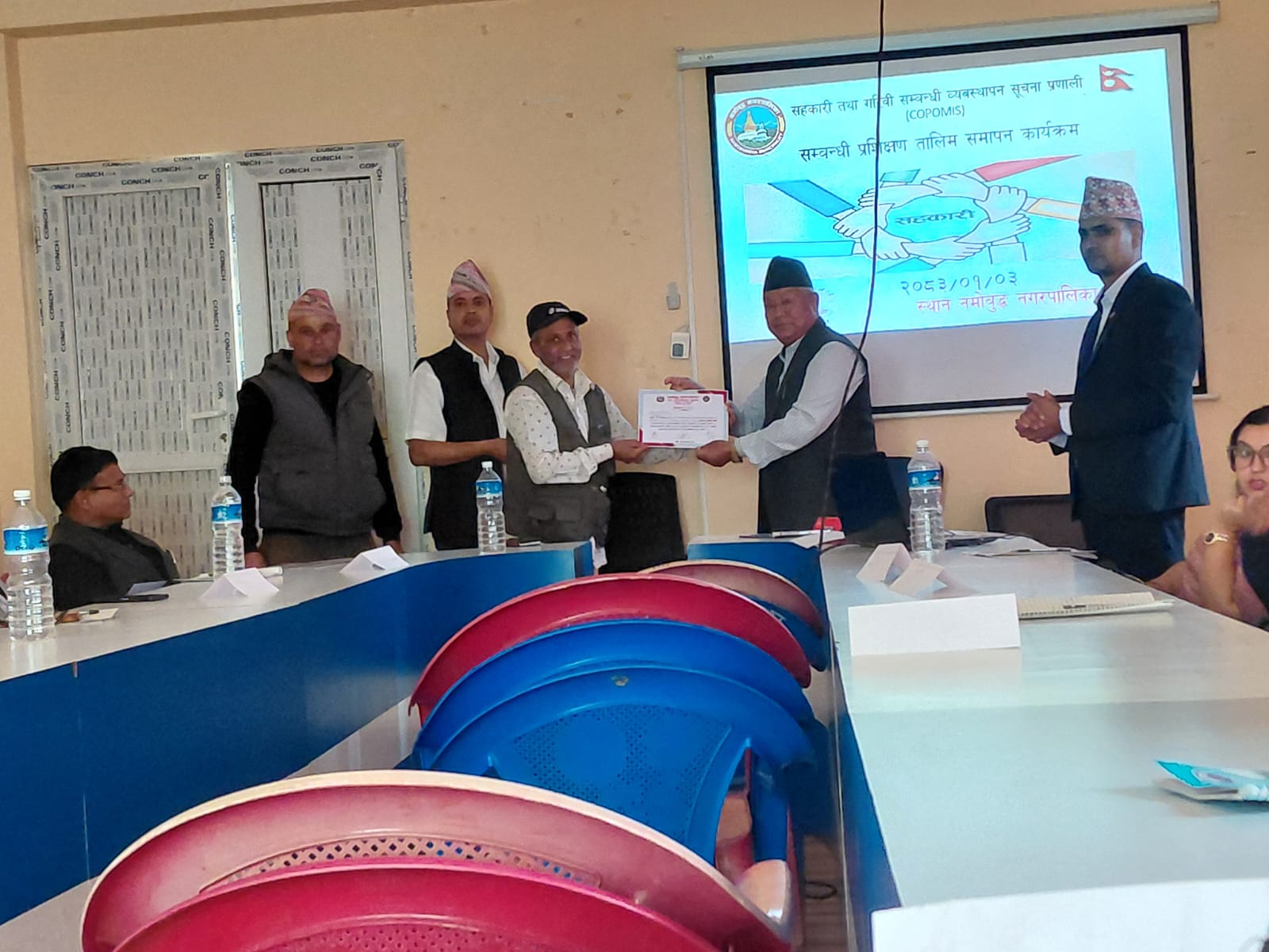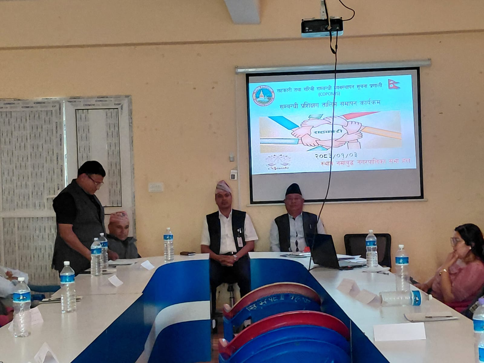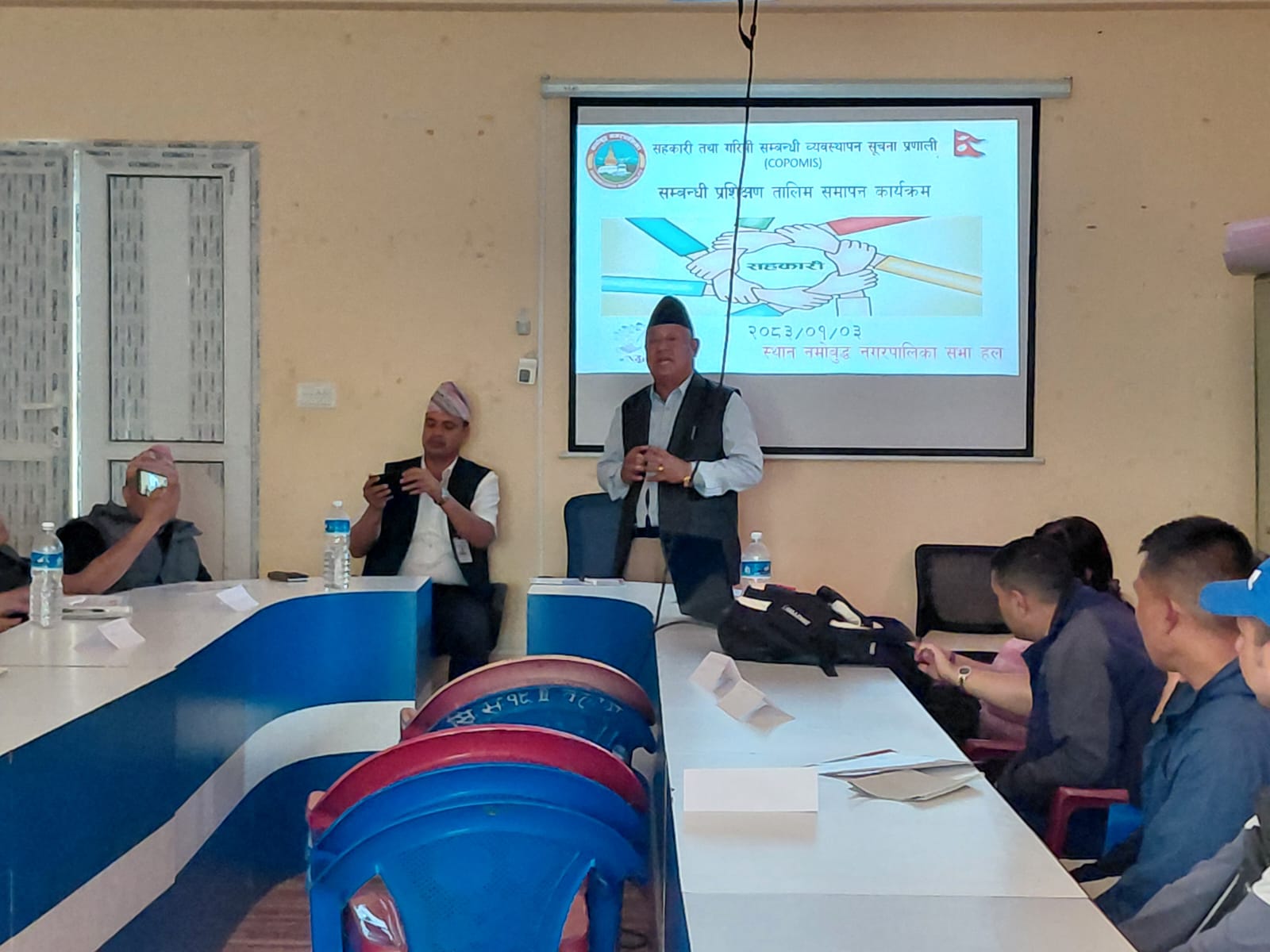 नमोबुद्ध नगरपालिका सहकारी शाखाको पहलमा सहकारी क्षेत्रलाई प्रविधिमैत्री, पारदर्शी र व्यवस्थित बनाउने उद्देश्यसहित सञ्चालन गरिएको CoPoMIS (Cooperative Management Information System) सम्बन्धी तीन दिने तालिम सम्पन्न भएको छ। तालिम नगरपालिकाको सभाहलमा उत्साहजनक सहभागितासहित आयोजना गरिएको थियो।